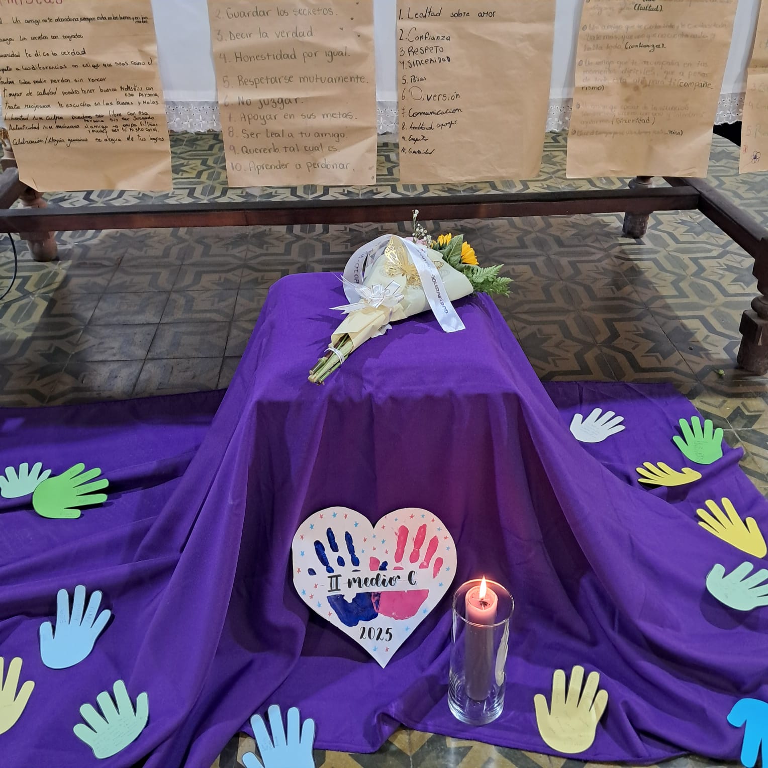 Finalmente, segundo medio reflexionó sobre «La Amistad Verdadera: Elegir, Construir y Cuidar Nuestras Relaciones» en la semana del 31 de marzo al 4 de abril. Los estudiantes exploraron cómo las amistades auténticas son elegidas conscientemente y cómo su fe influye en estas relaciones fundamentales. Mediante la creación de afiches y un «Decálogo de la Amistad», destacaron los valores esenciales para cultivar amistades verdaderas. Al igual que tercero medio, finalizaron su jornada con una misa el viernes.