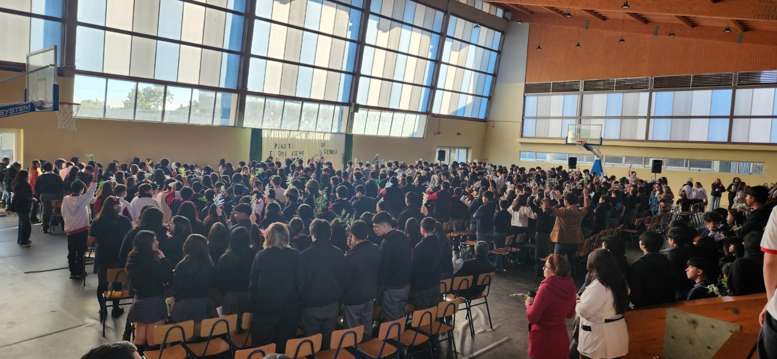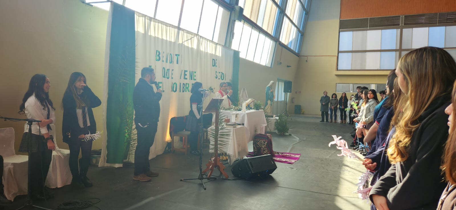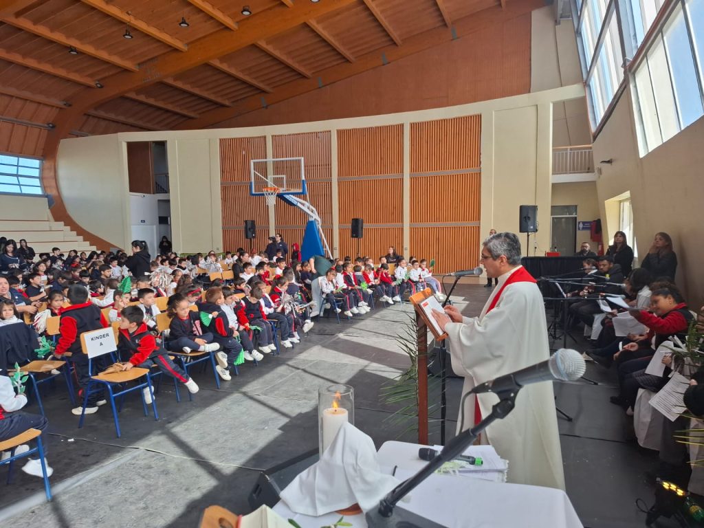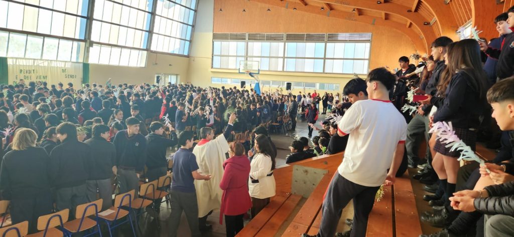 Desde los primeros momentos de la mañana, los distintos ciclos del colegio se unieron para recordar la entrada triunfal de Jesús a Jerusalén. En el primer bloque, los estudiantes de 4° Medio a 6° Básico participaron con gran recogimiento en la Santa Misa, donde se proclamó con fuerza: “¡Bendito el que viene en nombre del Señor!”.