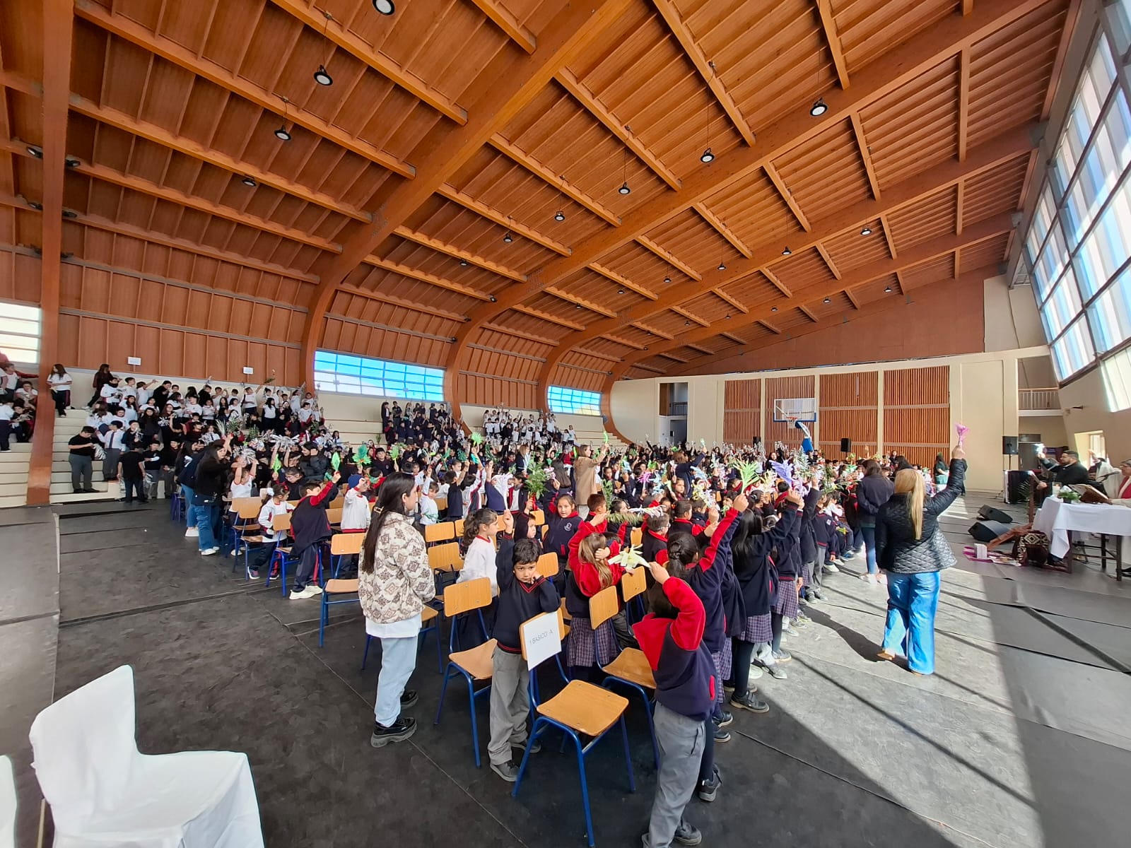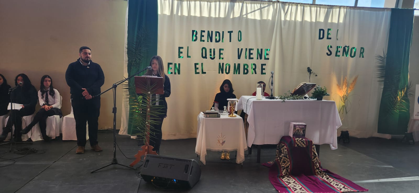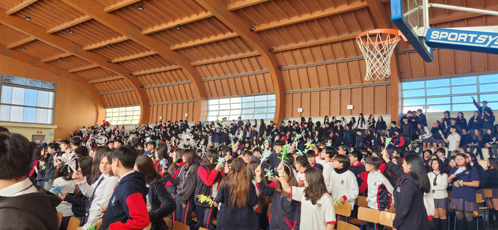 Desde los primeros momentos de la mañana, los distintos ciclos del colegio se unieron para recordar la entrada triunfal de Jesús a Jerusalén. En el primer bloque, los estudiantes de 4° Medio a 6° Básico participaron con gran recogimiento en la Santa Misa, donde se proclamó con fuerza: “¡Bendito el que viene en nombre del Señor!”.