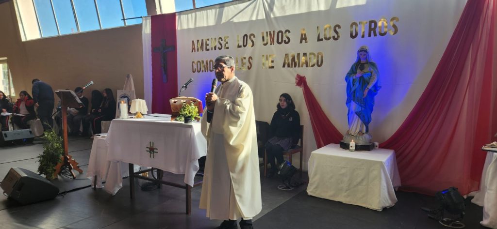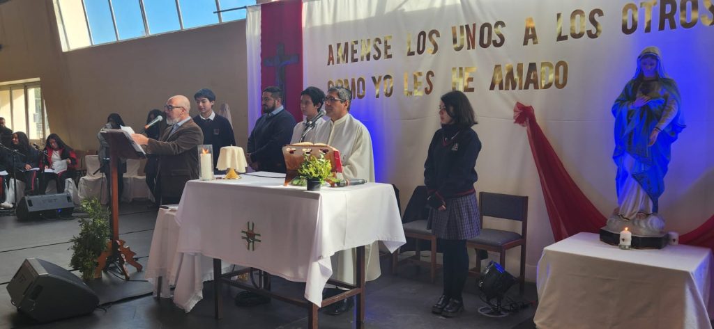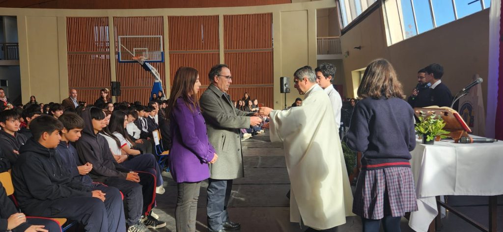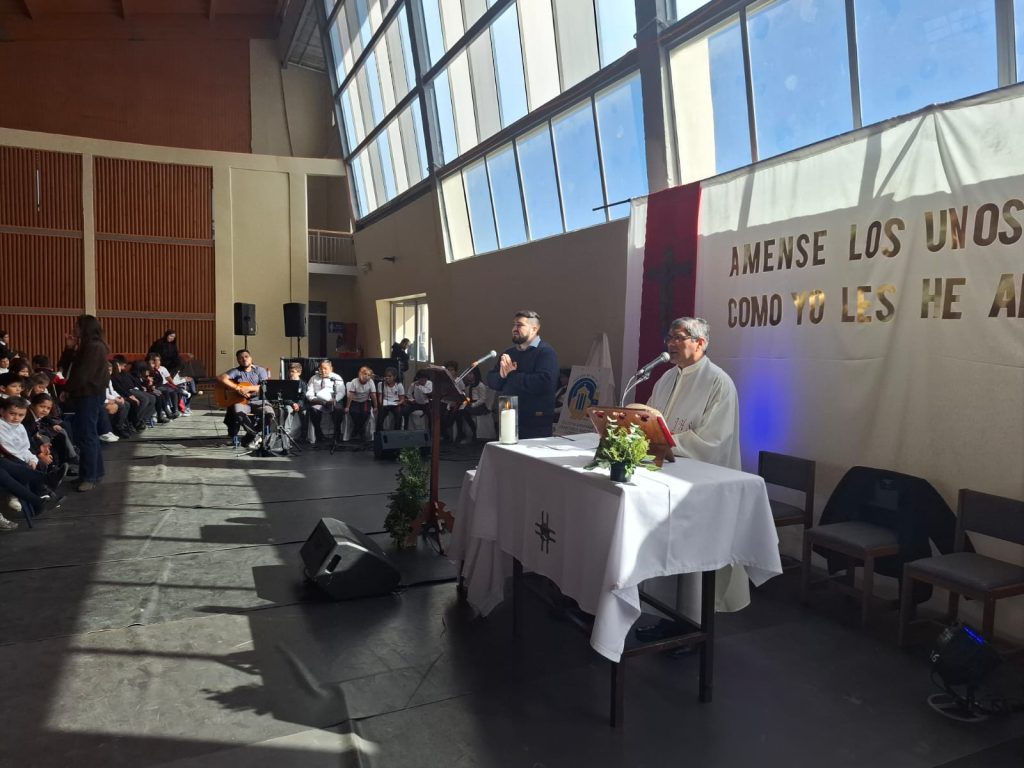 La jornada comenzó con la Misa celebrada por el Padre Cristian Avendaño, capellán de nuestro colegio, donde participaron los estudiantes de 4° medio a 6° básico, junto a la directiva del Centro de Padres y los delegados de pastoral de apoderados, quienes se unieron en oración y agradecimiento.