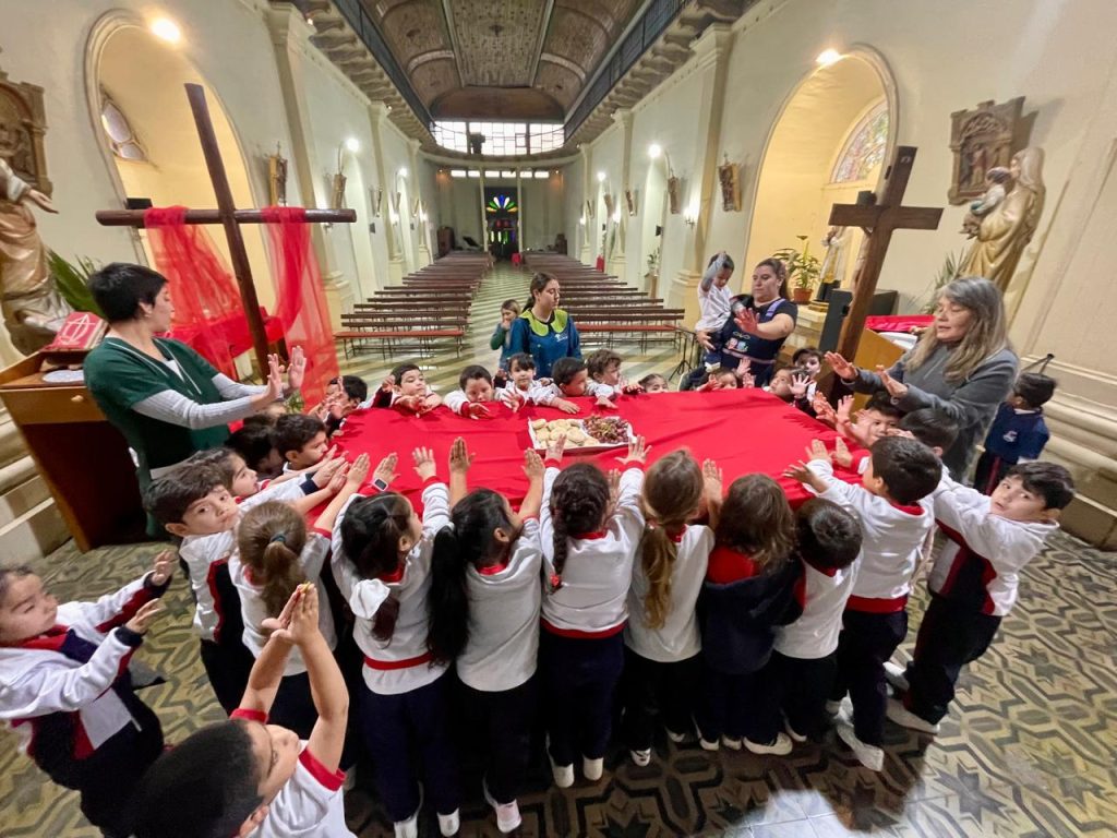 Por la tarde, fueron los más pequeños de Prekínder quienes vivieron un momento muy significativo. Visitaron la capilla del colegio, conocieron este lugar sagrado y recibieron la bendición del pan y la uva, gesto que les permitió sentirse parte de esta gran comunidad de fe.