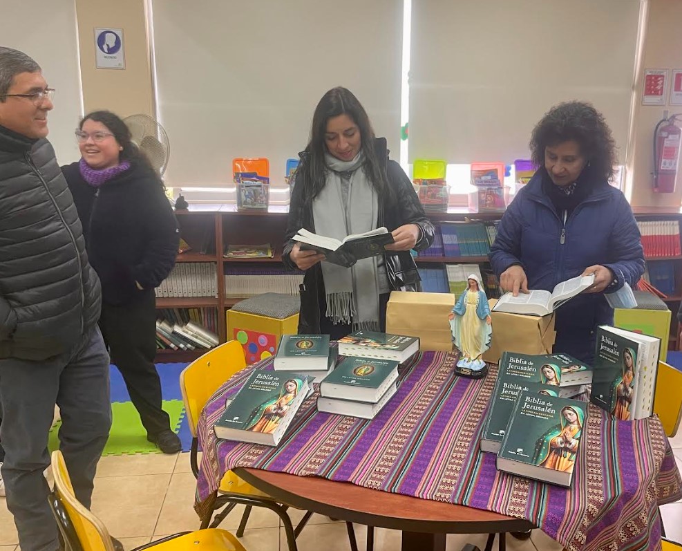 Este viernes 25 de julio, en un emotivo acto realizado en la biblioteca del colegio, se celebró la bendición de las 40 nuevas Biblias de Jerusalén – edición latinoamericana, letra grande, adquiridas para fortalecer el trabajo del Departamento de Religión y la Pastoral Escolar.