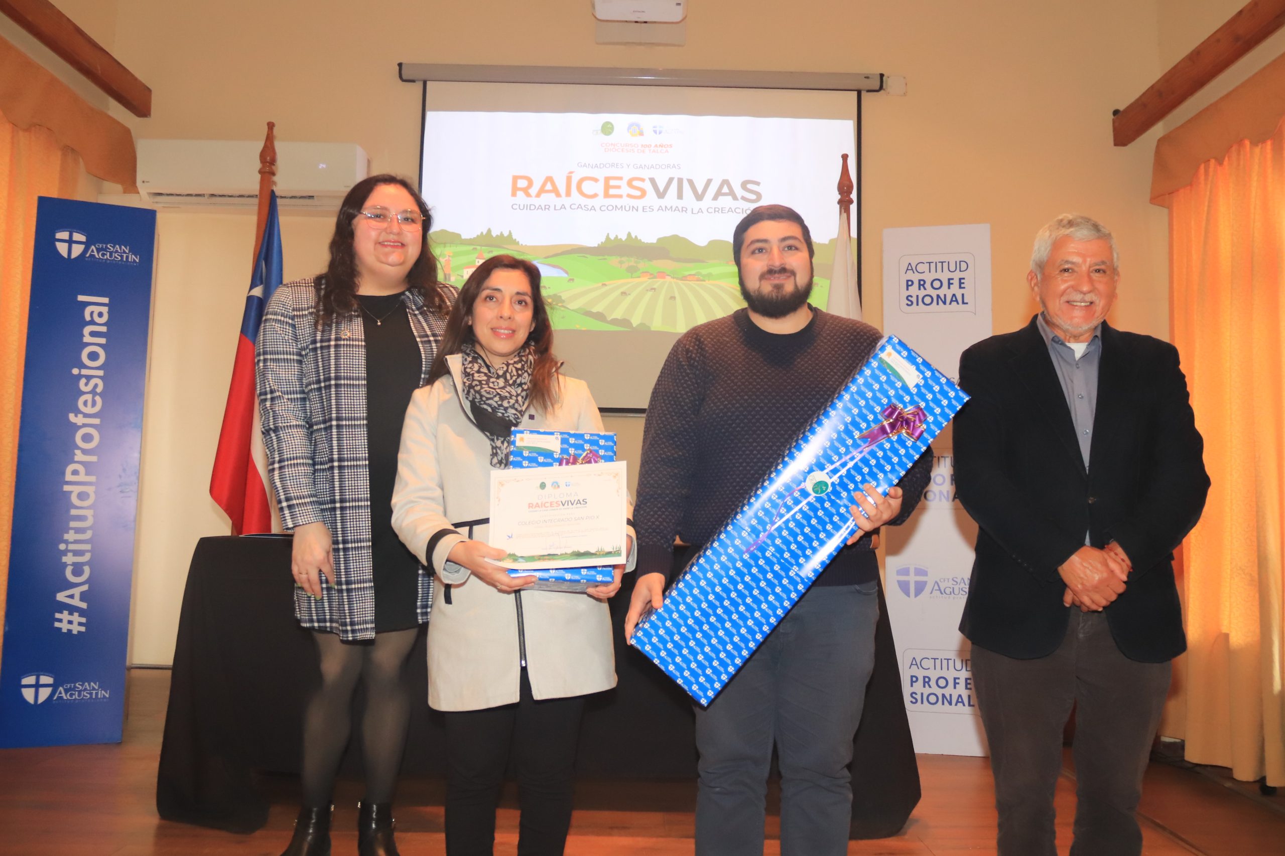 En esta significativa jornada —realizada en el Salón Monseñor Carlos González, sede Talca del CFT San Agustín— se reconoció el valioso aporte de nuestra comunidad educativa en el concurso «Raíces Vivas», iniciativa que buscó destacar la riqueza del mundo rural y su vínculo con la Iglesia, en el contexto del centenario de nuestra Diócesis.