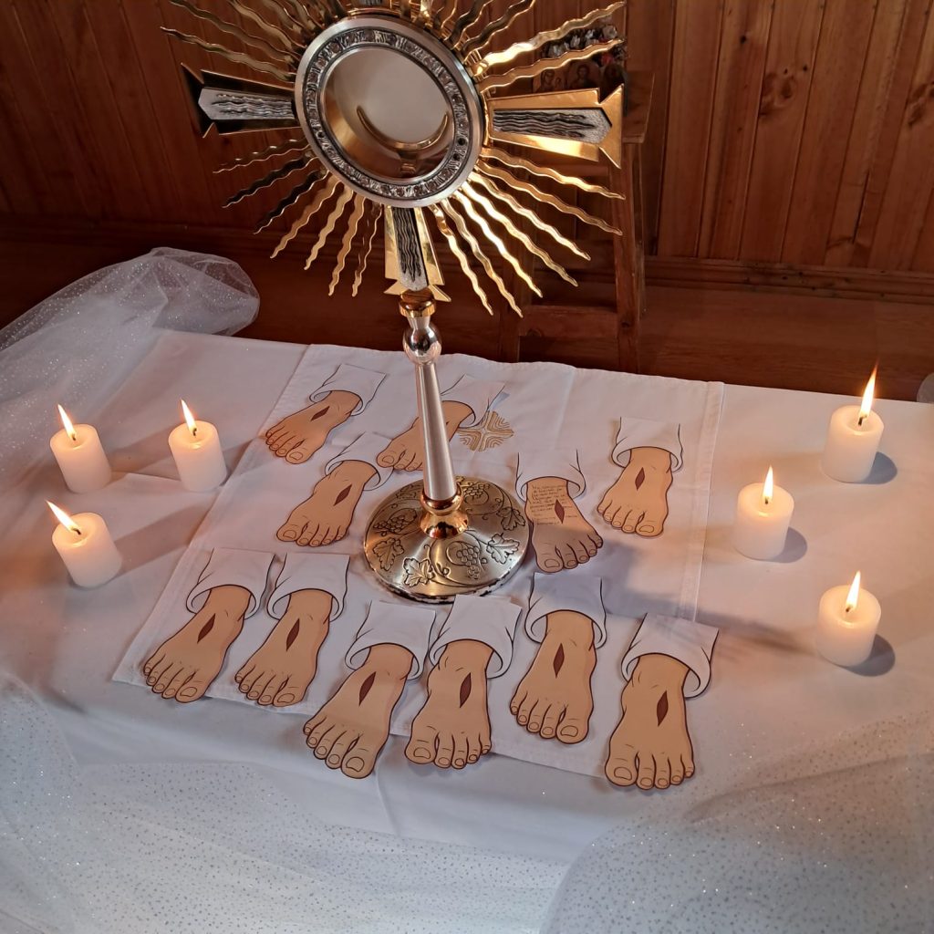 Posteriormente, se vivió un momento de adoración guiado por nuestro Capellán, el Padre Cristian, centrado en la figura del Cristo roto, símbolo del dolor, la entrega y la redención. En ese contexto, se reflexionó sobre cómo, al encontrarnos con Cristo, Él nos llama a seguirlo y nos envía con una misión: servir con amor a los demás.