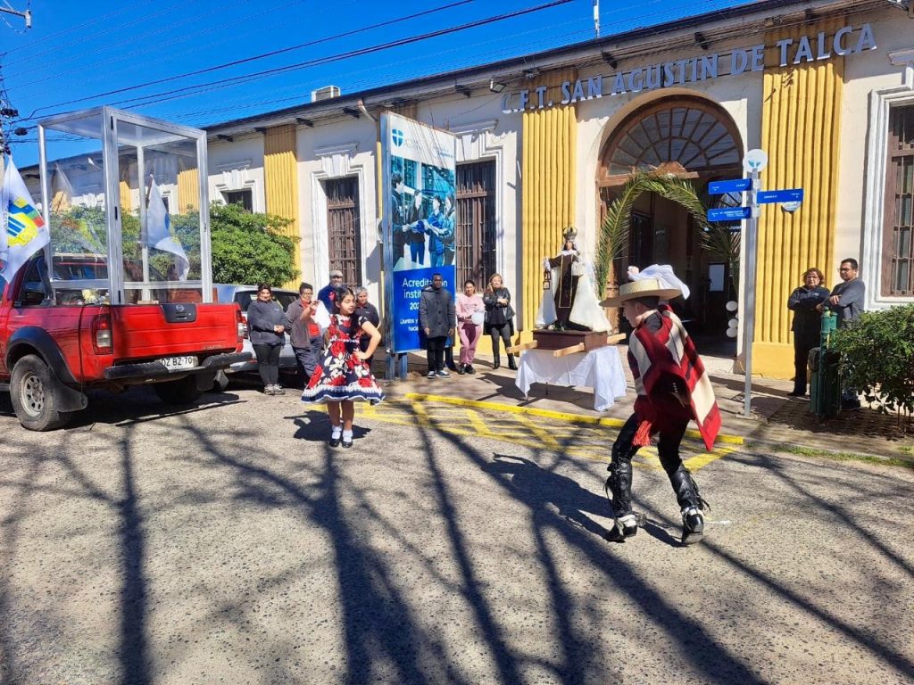Nuestro colegio se hizo presente no solo con su asistencia, sino también con un homenaje artístico y orante. Los estudiantes del Cuarto Básico B, recientes ganadores del campeonato regional de cueca, ofrecieron un hermoso esquinazo y bailaron con gran devoción a los pies de la Virgen. A este tributo se sumó el talento de la estudiante Florencia Díaz, del IIº Medio A, quien con gracia y sentimiento le dedicó dos pies de cueca a nuestra Madre, en un gesto que conmovió a todos los presentes.