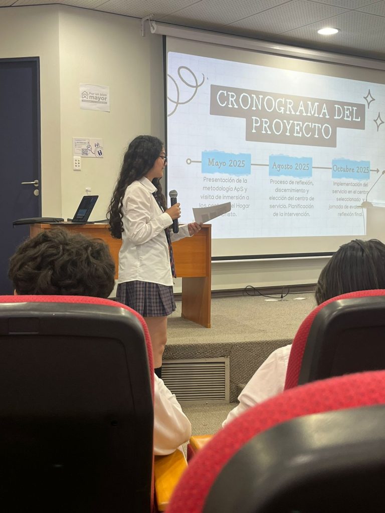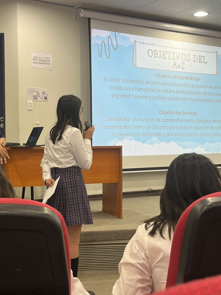 Durante la presentación, los estudiantes detallaron cómo transformaron la tradicional actividad pastoral en un proyecto pedagógico profundo a través de la «Ruta San Alberto Hurtado». Relataron su proceso de inmersión y diagnóstico, el cual incluyó visitas a diversas obras del Hogar de Cristo, como la Sala Cuna y Jardín Infantil «Niño Alberto», el Hogar de Adultos Mayores y el Centro de Día para personas en situación de calle. Fue a partir de estas vivencias directas y del vínculo generado con los usuarios que los jóvenes pudieron discernir y diseñar un servicio significativo, respondiendo a necesidades reales de acompañamiento y diálogo en el centro DIA.