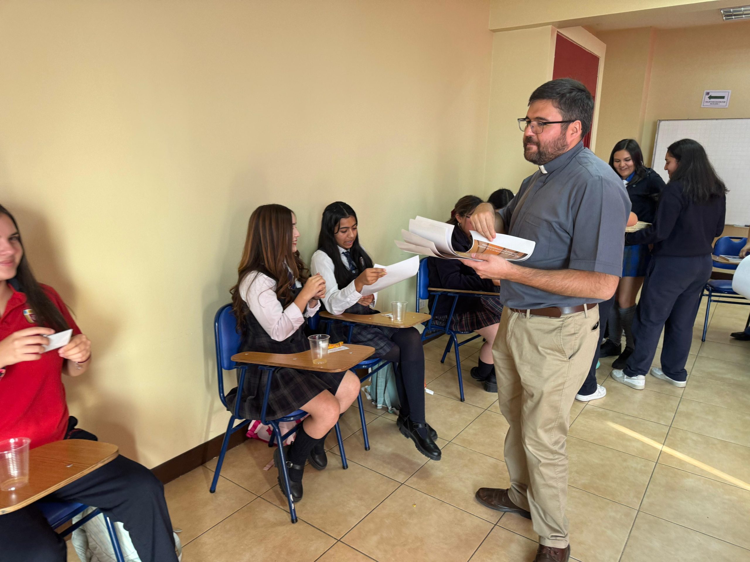 El encuentro juvenil estuvo guiado por el Padre Rodrigo, Vicario de la Pastoral Juvenil, junto a Daniela y Beatriz, quienes lideraron las dinámicas de participación con los estudiantes. En paralelo, los encargados de Pastoral de los distintos colegios sostuvieron una reunión junto al Padre Carlos Letterier, centrada en reflexionar sobre los desafíos y oportunidades del quehacer pastoral en la actualidad.