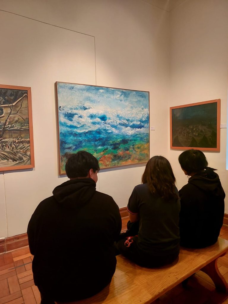 Los días 7, 10 y 16 de abril las y los estudiantes del electivo de Artes Visuales de los terceros medios, realizaron una salida pedagógica a la galería Nuga de la Universidad de Talca, donde se desarrolló la visita guiada donde se les explicó el contexto histórico, materialidad y técnica de las distintas salas según el artista, también se les otorgó un momento libre en el cual los alumnos pudieron apreciar las obras y responder la guía de trabajo entregada por la profesora.