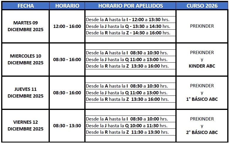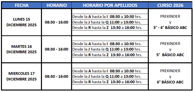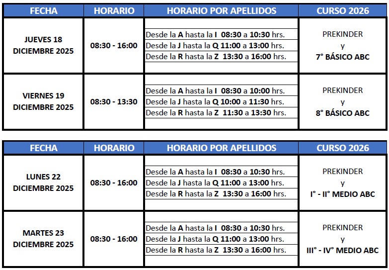 • Periodo matrícula alumnos nuevos y de continuidad (PRESENCIAL): 9 al 23 de diciembre del 2025